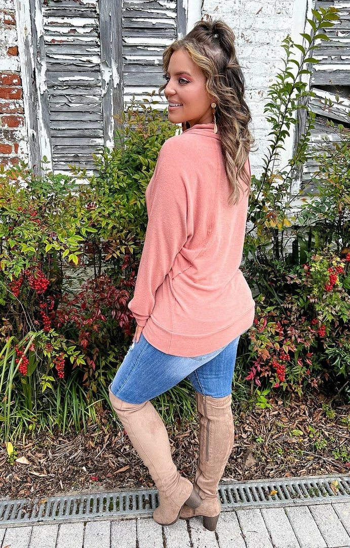 This is the perfect go to solid with comfort and style in mind! It features the softest material with a stretchy design. It has dolman style sleeves with a cut that becomes more fitted as it nears the bottom of the top to flatter your shape. Grab yours before its gone!