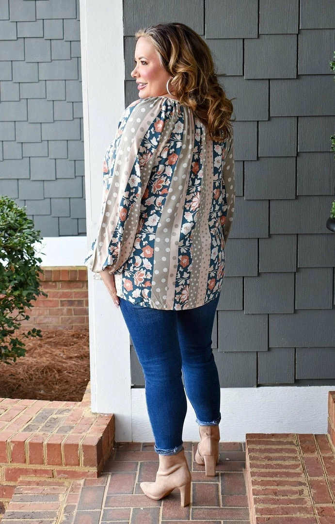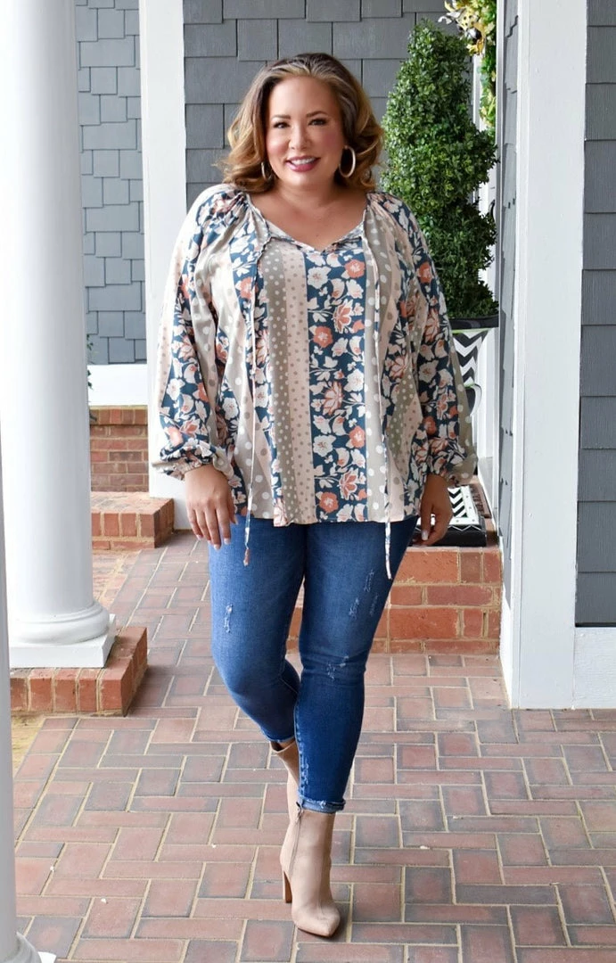 This printed top is sure to keep you in style no matter where you go! This one features dot detailing with floral accents and the cutest girly accents throughout, Although there is no stretch in the material, this one glides over your shape to flatter and runs true to size. You are going to love rocking this with your favorite jeans and statement accessories this season!