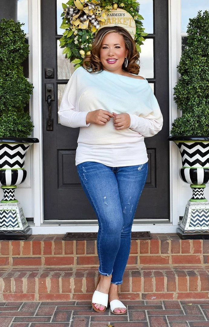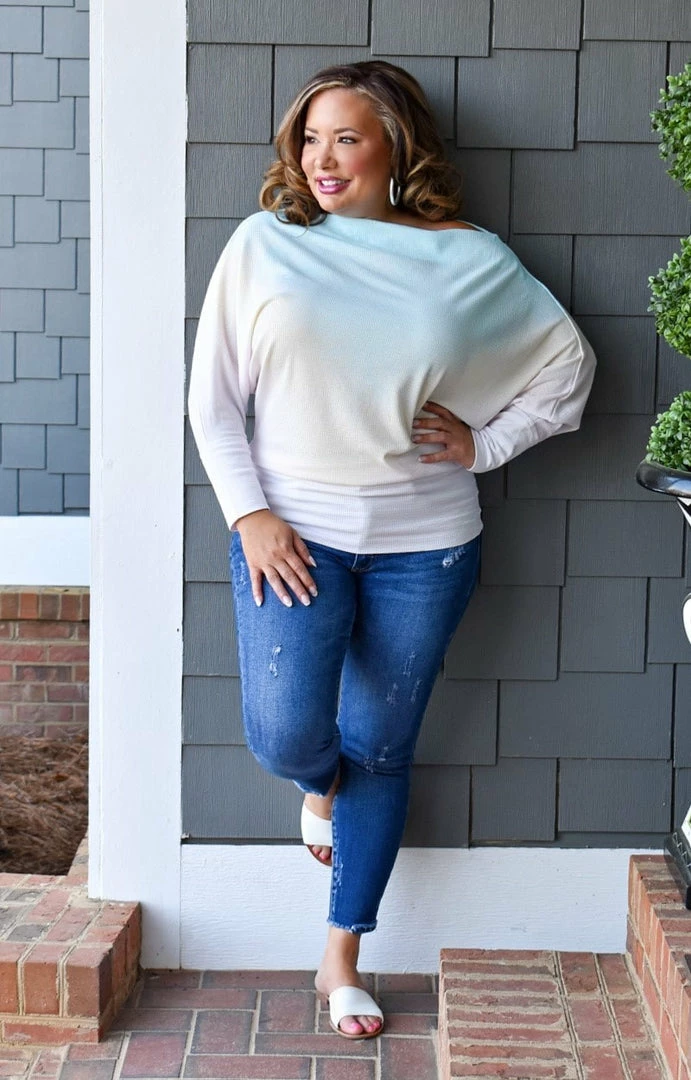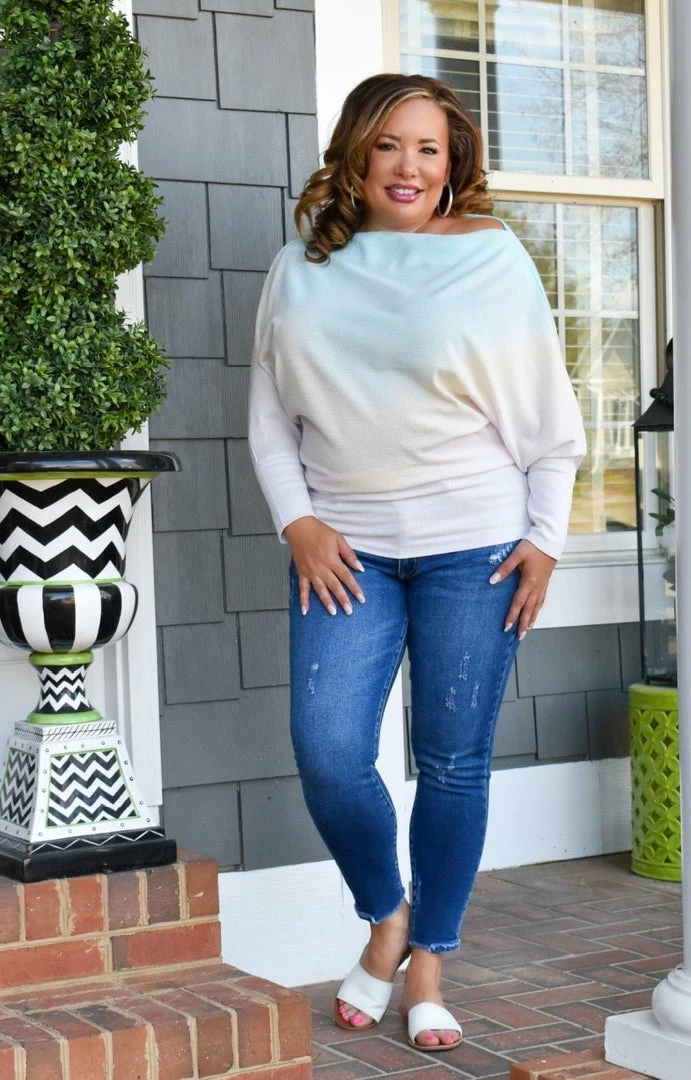 The tie dye colors in this top are absolutely beautiful and so dreamy! This beauty features a pastel like color combination with such a cute fit. This one can be worn a variety of ways near the shoulder area depending on your preference. It has dolman style sleeves and is more open along the sides, but becomes more fitted along the bottom of the top and the bottom of the sleeves with a structured stretchy paneling. Grab yours up with your favorite jeans and a cute sandal and get ready to turn heads!