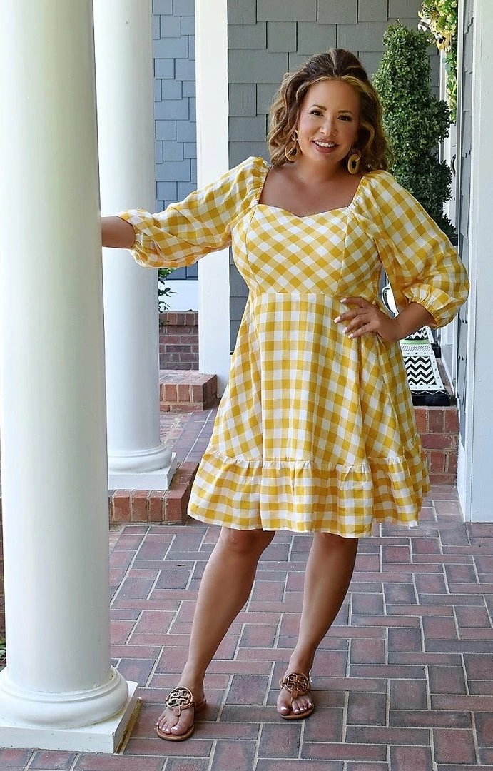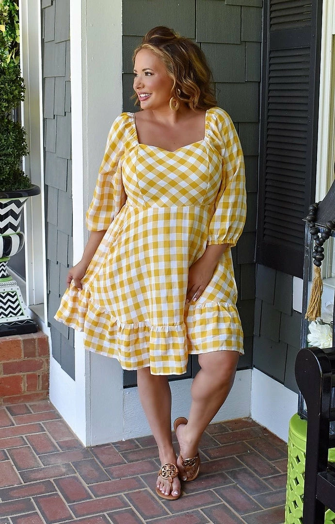 This dress is giving us all the southern vibes and we are completely obsessed! We love the unique honey color combination throughout the gingham print truly setting this apart from the rest! This features a sweetheart neckline with quarter length sleeves. We love how this features a fit and flare design sure to flatter any body shape. The ruffled trim adds the perfect finishing touch. Hurry and make this eye catching dress yours!