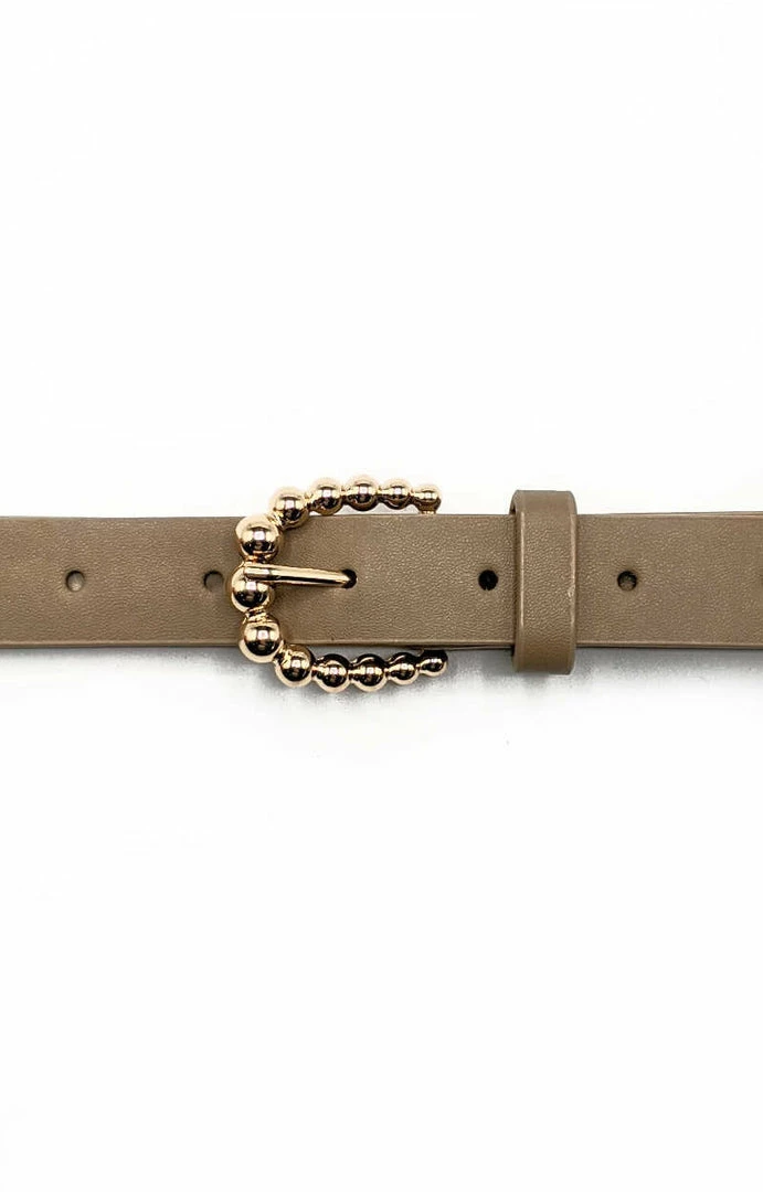 A neutral colored belt is always an essential must have for rocking with a variety of looks and this one is just what you need to complete your next PPB outfit. This one features gold accents and looks so cute on! You are going to love this one!