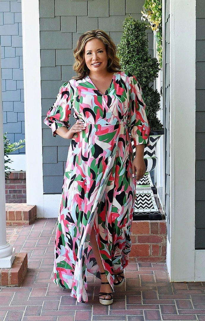 You are sure to be printed to perfection in this beautiful print maxi dress! This stunner features a true wrap style design that makes it custom to your shape to cinch you in like no other. The puff like sleeve adds such a cute pop. This one runs true to size, but does have a banding along the bottom of the upper arm area. Throw this on with your favorite accessories and get ready for all eyes on you!