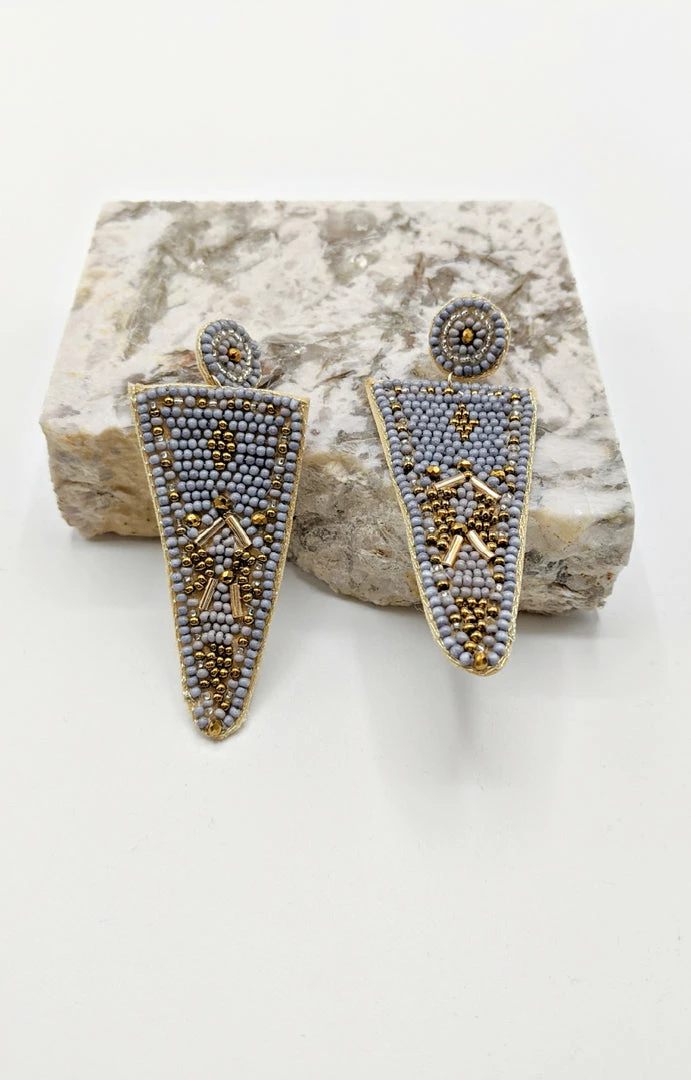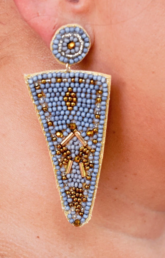 These earrings are sure to make a statement with so many looks this season! These dangle with a beautiful beaded design throughout with bronze accents and slate gray beading to truly give that bold pop. They are also pretty lightweight as well. You are going to love these!