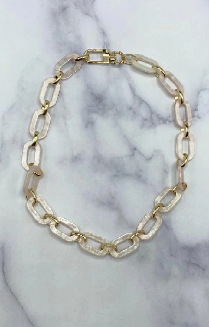 We are obsessing over the unique peach and gold coloring throughout this chain necklace. We love the light weight design making this ideal for all day wear! Make this yours and enjoy the endless options it offers!
