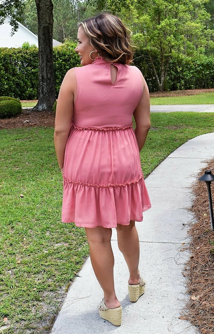 The perfect go to solid that can easily be taken from day to night with the switch of a shoe is here and just for you! This beauty features a non stretch material, so if larger in the bust we recommend going up one size for the best fit in that area. The ruffle tiered accents along this dress adds the cutest extra pop. This one is an effortlessly fabulous stunner that you are sure to love!