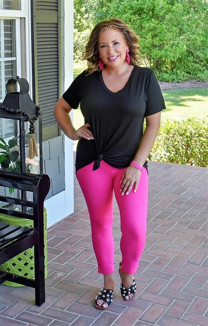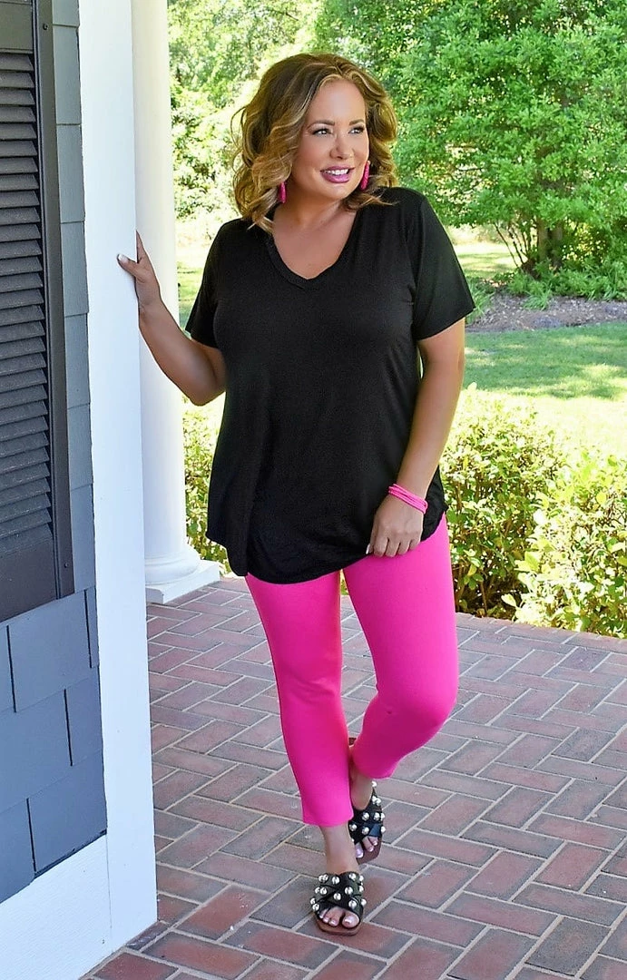 Your new go to top is here and calling your name! With endless styling possibilities, you are sure to love the versatility of this bold black beauty. This top features a stretchy and breathable material that glides over your shape along with a v-shaped neckline. Grab yours up before its gone!