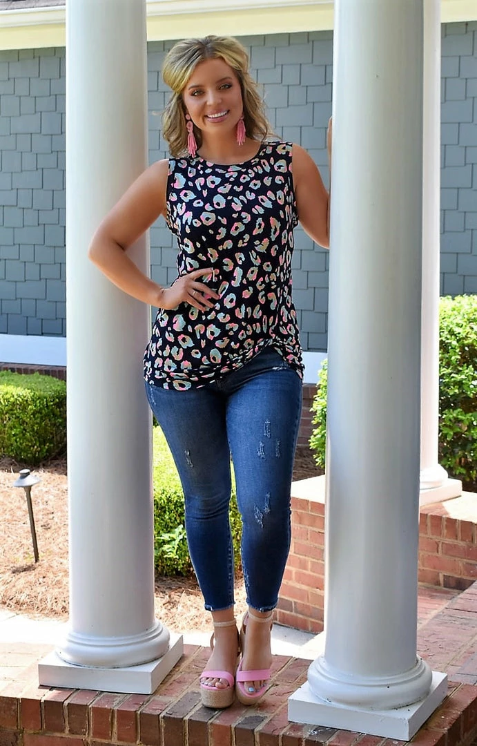 With both comfort and style in mind, this top is just what you need! It features pops of pinks and mint that stand out beautifully next to the dark navy background. This material is so stretchy and breathable as well. The knot detailing along the front side cinches it in to add a cute and flattering touch. You are going to love this one!