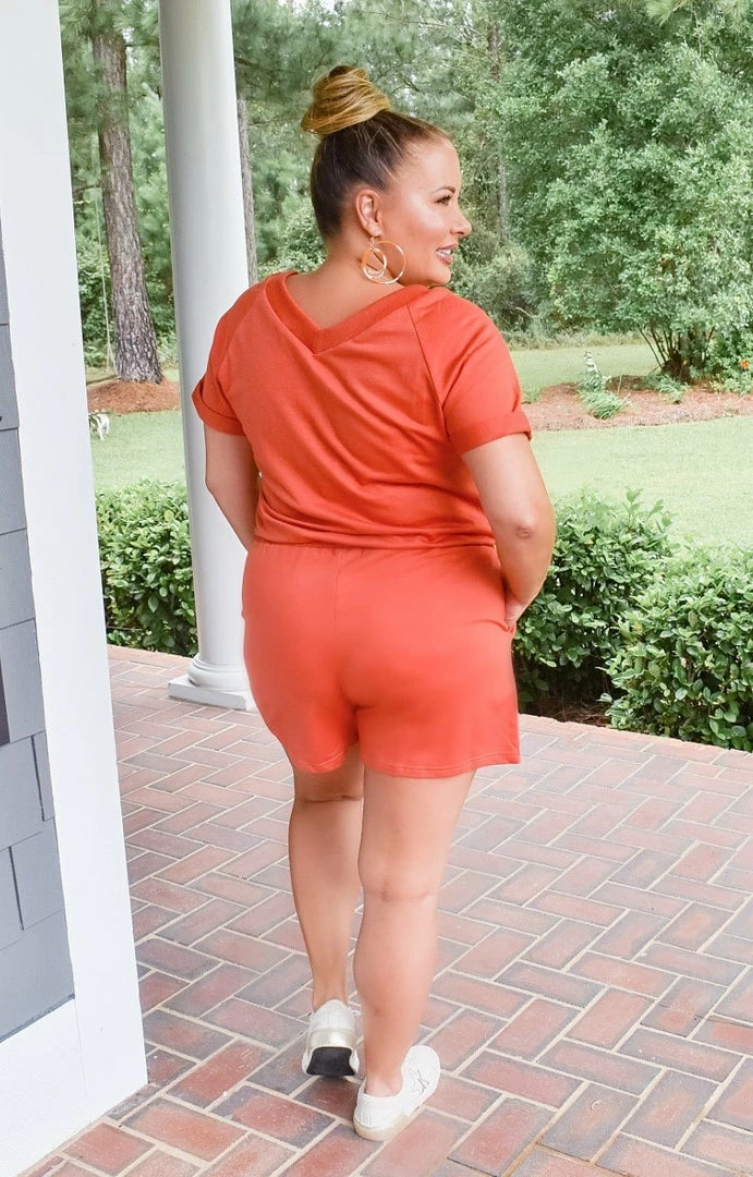 This romper is perfect for a casual day out. The rust color is beautiful, and the fit is very flattering. Highly recommend!