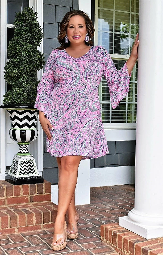 Get the Lily Pulitzer look for the PPB price with this eye catching stunner! This beautiful dress features a poly spandex material that is breathable and stretchy to glide over your shape to flatter. The sleeves feature a more open cut design with a belle like cut to bring on the drama. The back has a belt that ties in to truly cinch in your shape. It even has pockets! You are going to stun in this must have print dress!