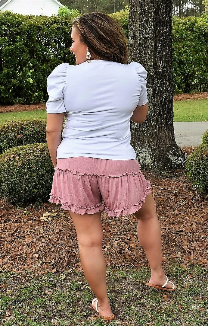 Everyone’s favorite top is now here in this versatile white option! We are absolutely obsessed with the fit on this one and how fabulous it looks when paired with our new shorts! The neckline has a unique cut to flatter with statement making sleeves to add a pop of detail. This one runs true to size with some stretch. You are going to love the endless pairing options this top gives!
