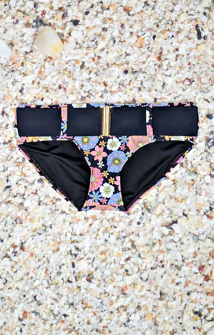 There’s more to sea, gals! Secure your pin-up silhouette to the these fabulous swim bottoms, featuring a groovy floral print in pink, blue, and white cascading through a black backdrop. This adorable swim separate boasts a stunning retro belt and is fully mesh lined for flattering pin-up posing!