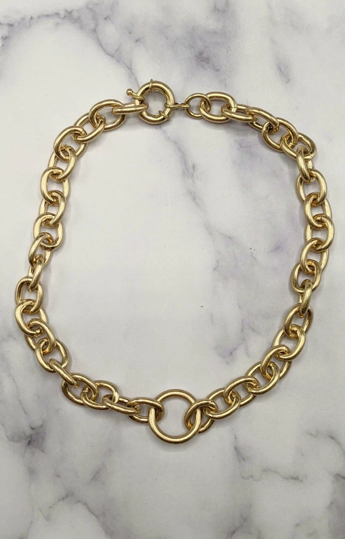 This choker style necklace is sure to be your new favorite! We love the gold color with the clasp design sure to keep everything comfortable and secure. You will love mixing and matching this with a variety of looks this season!