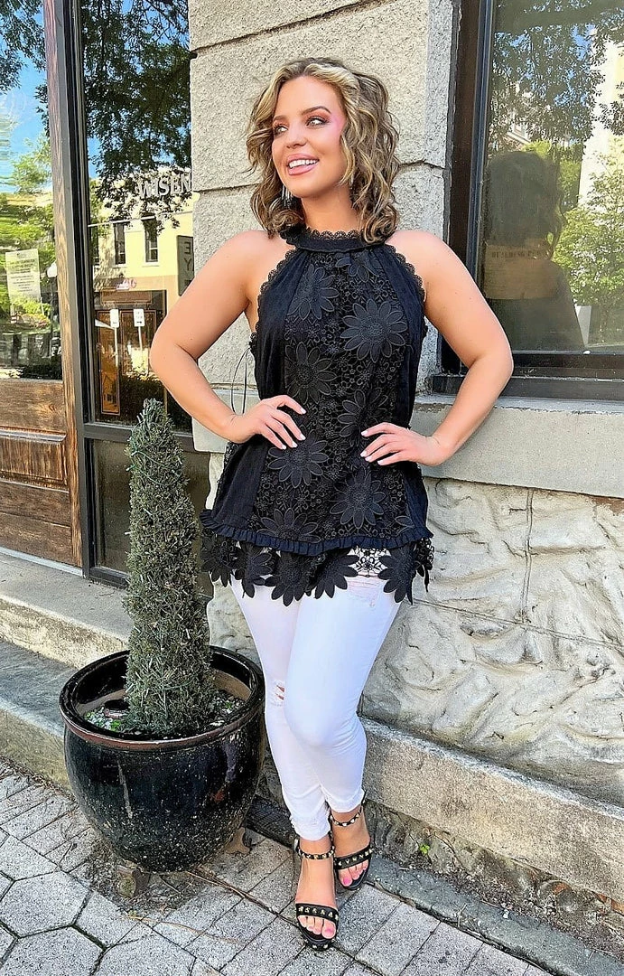 I absolutely love this lace top! The fit is perfect, and the black color is so versatile. It’s great for both casual and dressy occasions.