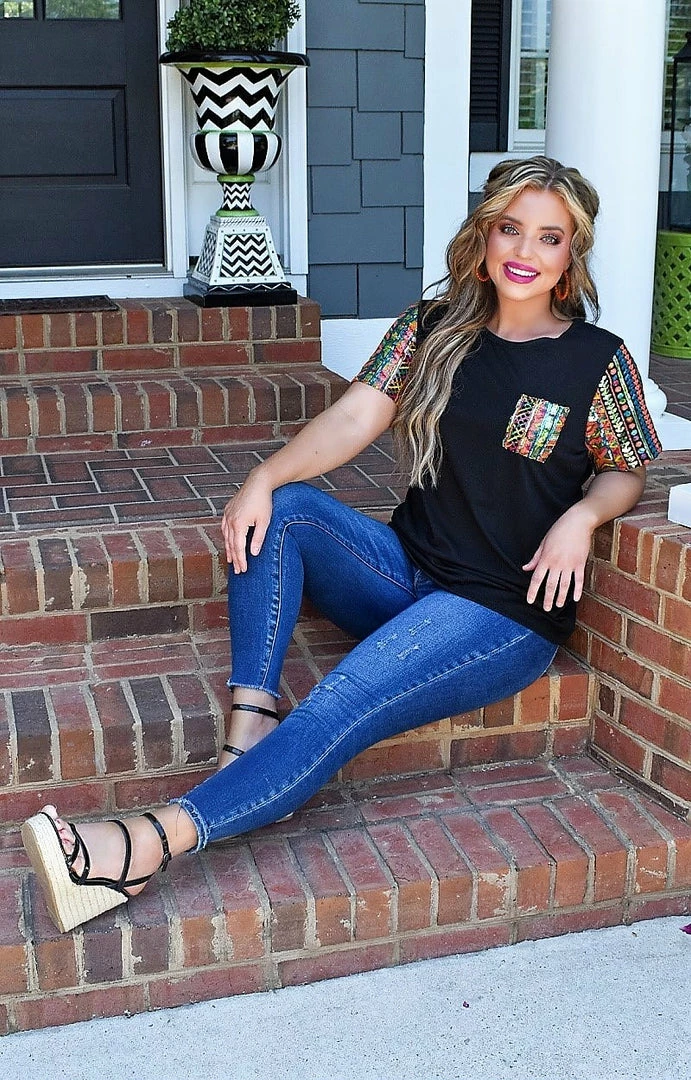 We are all for the sequins on this stunning go to top! This little pocket on the front also adds the cutest little pop. The material in this one is breathable and stretchy with a comfy feel. Take your casual to the ultimate level and make this one all yours! You are going to love this top the moment you put it on!